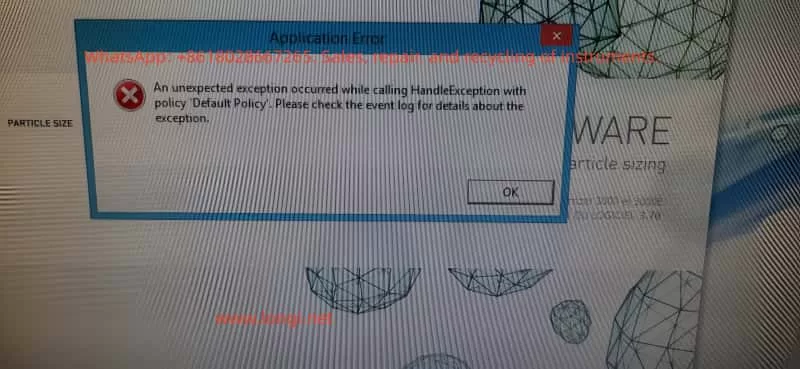 The Mastersizer series (including models 2000, 3000, and 3000E) are high-precision particle size testing devices that involve multiple modules such as optical measurement modules, laser optical path systems, expansion units, high-speed data acquisition cards, communication links, and PC software environments. An abnormality in any of these modules can lead to software startup failure. In particular, the Mastersizer 3000 software adopts the Microsoft .NET + Enterprise Library exception management framework, resulting in a complex exception structure that is prone to “HandleException” and “Default Policy” related errors.